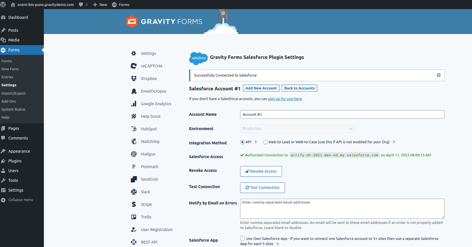 مثال لاضافة العرض التوضيحي لنماذج الجاذبية لبرنامج WordPress الإضافي