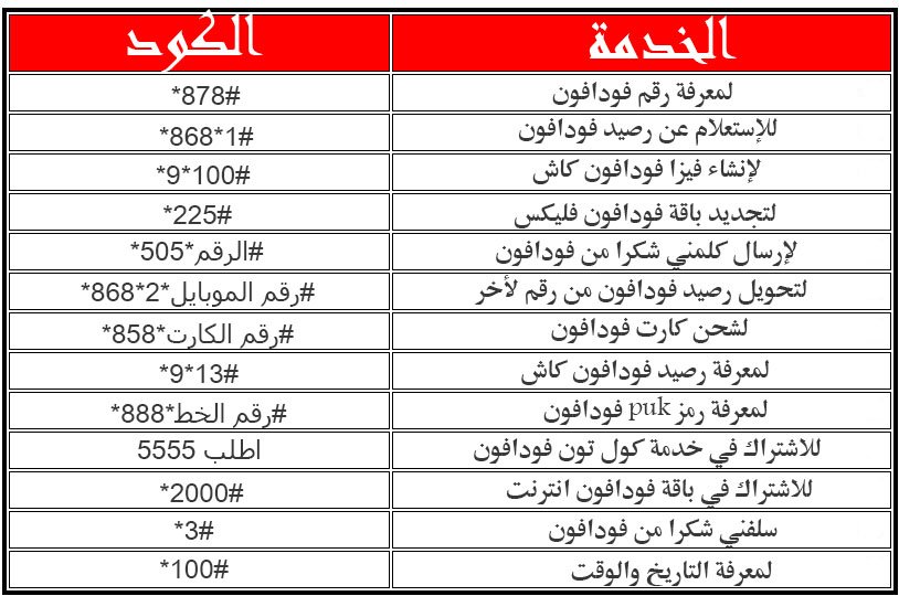 جميع اكواد فودافون 2024 :