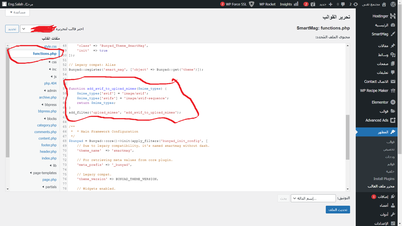 الآن يمكنكم التنوجه لمحرر ملفات القالب – ثم ملق functions.php